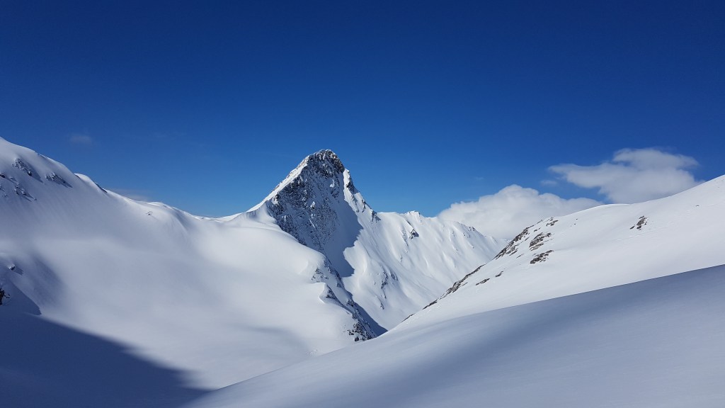 Mit 10km Distanz und 1700hm Höhendifferenz eine eher lange Tour. Der einsame Gipfel und die unberührte Natur entschädigen aber auf jeden Fall dafür. Auch das Gelände ist sehr gut zum Skifahren.