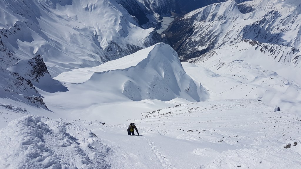 Die Verhältnisse waren bis hierher perfekt, knallharter Firn mit ein wenig Pulverschnee obendrauf.