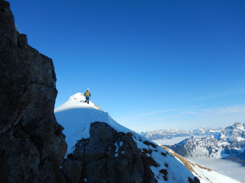 Der Grat ist ziemlich lang und braucht bis zum Gipfel und weiter für den Abstieg höchste Konzentration. Ohne Spuren oder Vorkenntnisse des Berges sollte für alles genügend Zeit eingeplant werde.