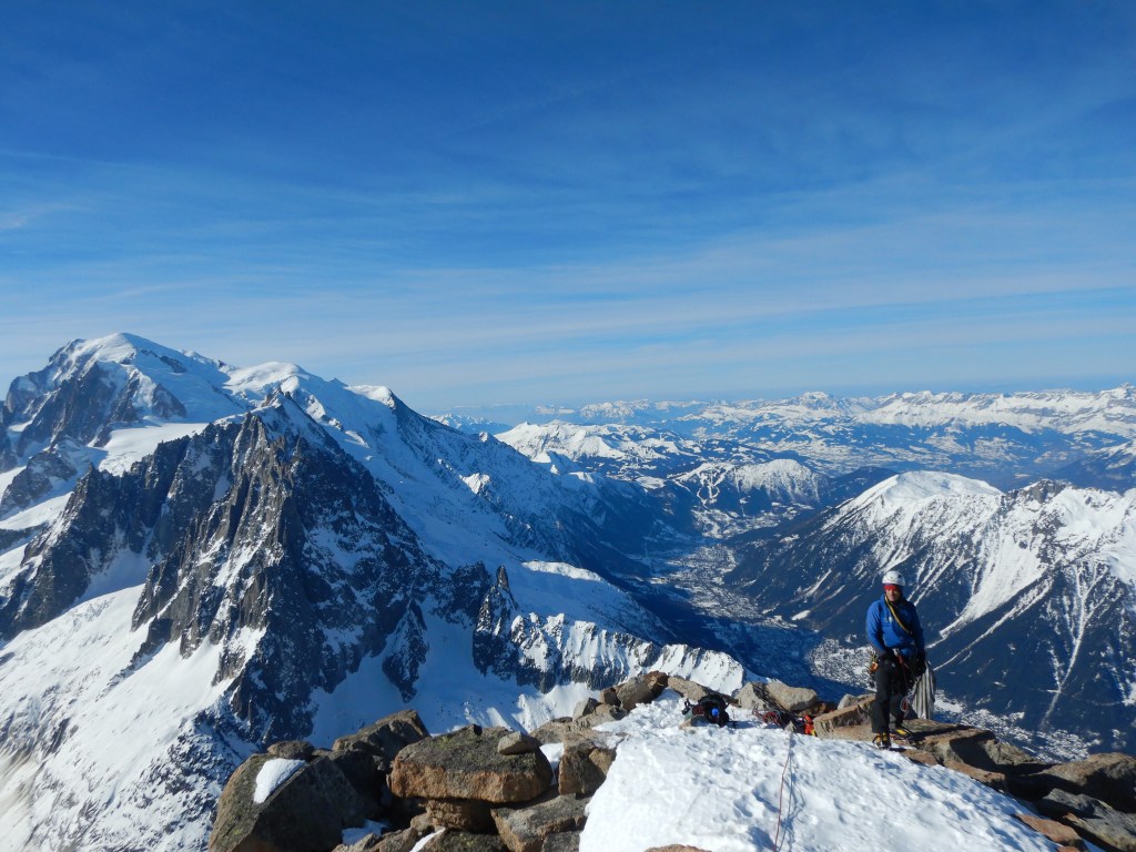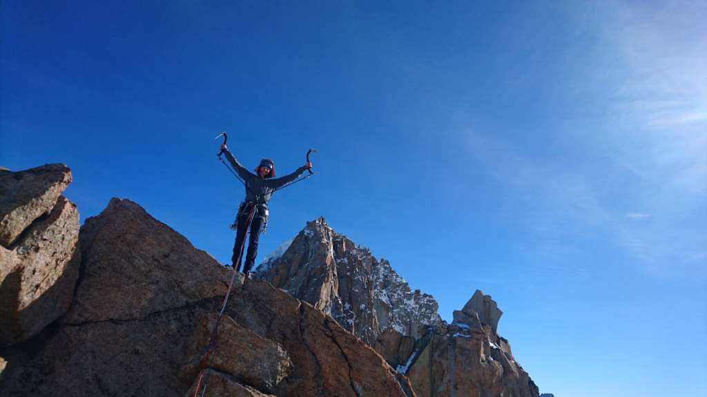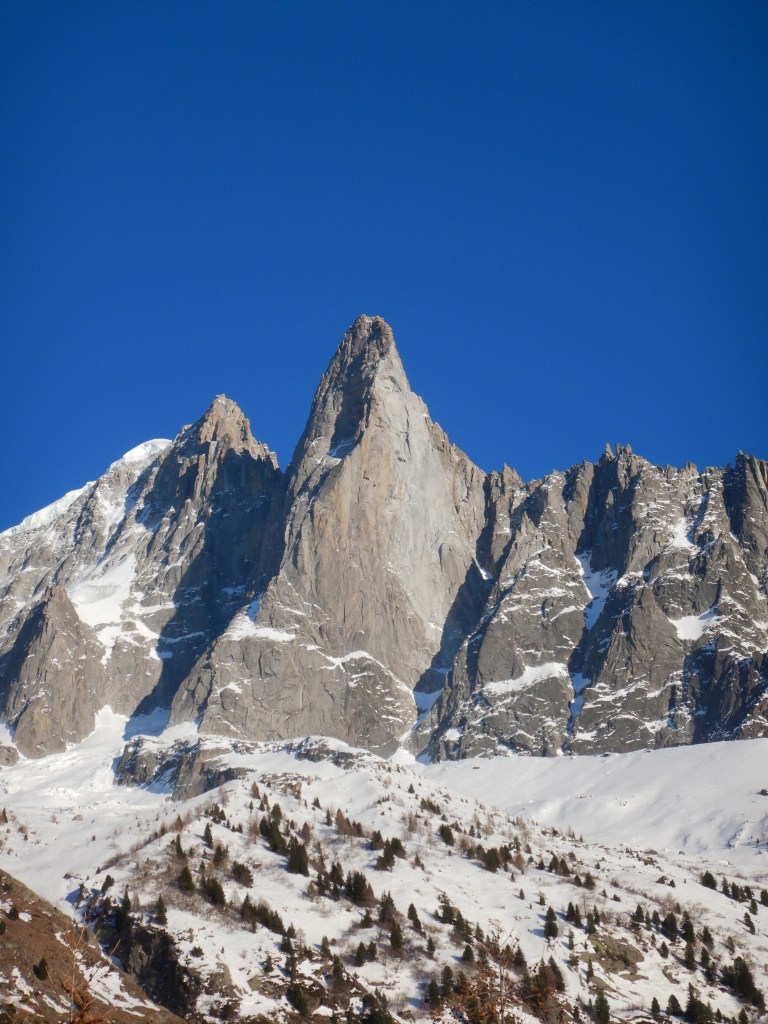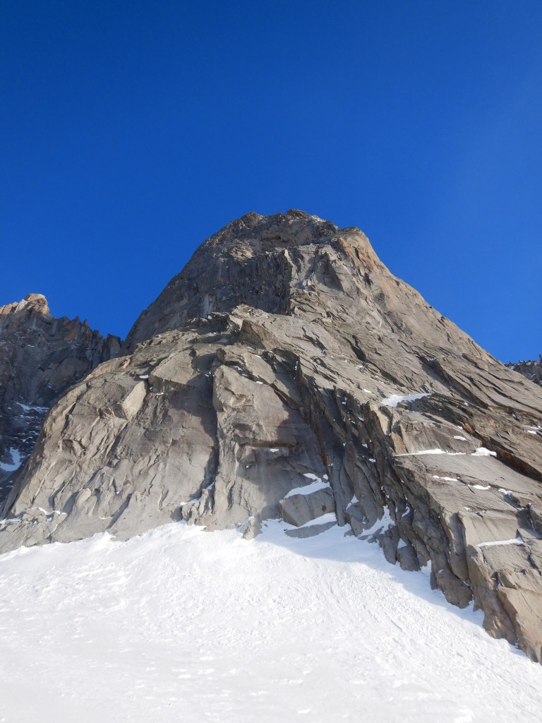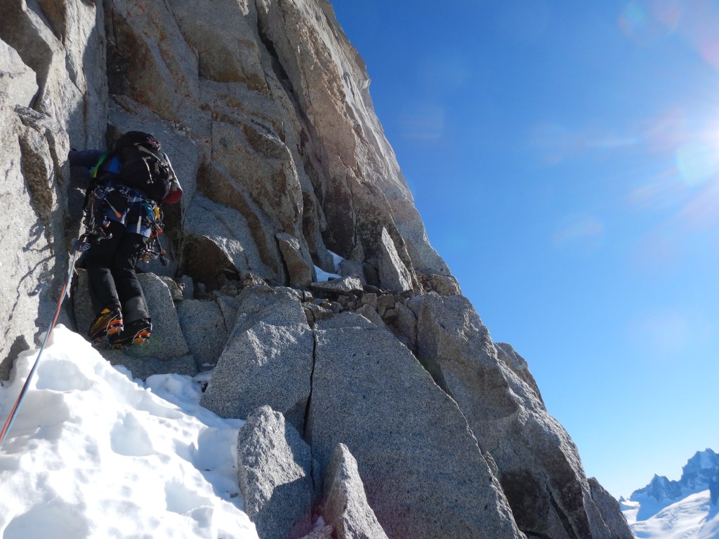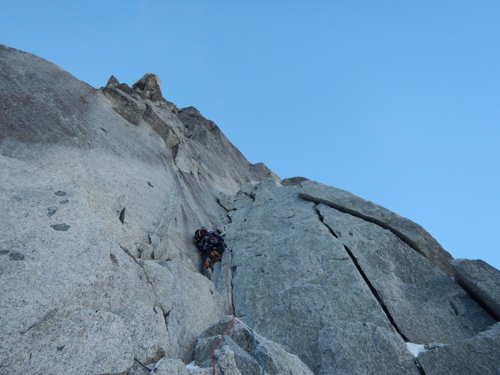 Die Schönwetterphase mit milden Temperaturen im Februar 2019 zog uns nach Chamonix, genau zur Petit Dru. Diesen Berg wollten wir schon lange einmal besteigen, da uns aber im Sommer der Steinschlag und im Winter die Kälte immer davon abhielten, war dies genau der richtige Zeitpunkt um einen Versuch in der Allain-Leininger Route zu starten.