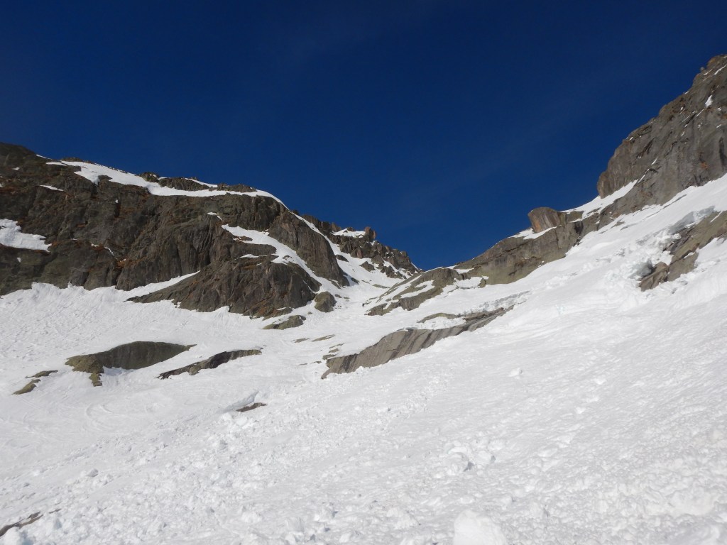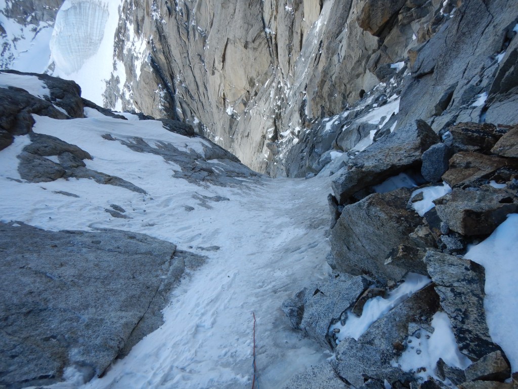 Die Steile Rinne die uns auf den Gletscher unterhalb der Drus führte