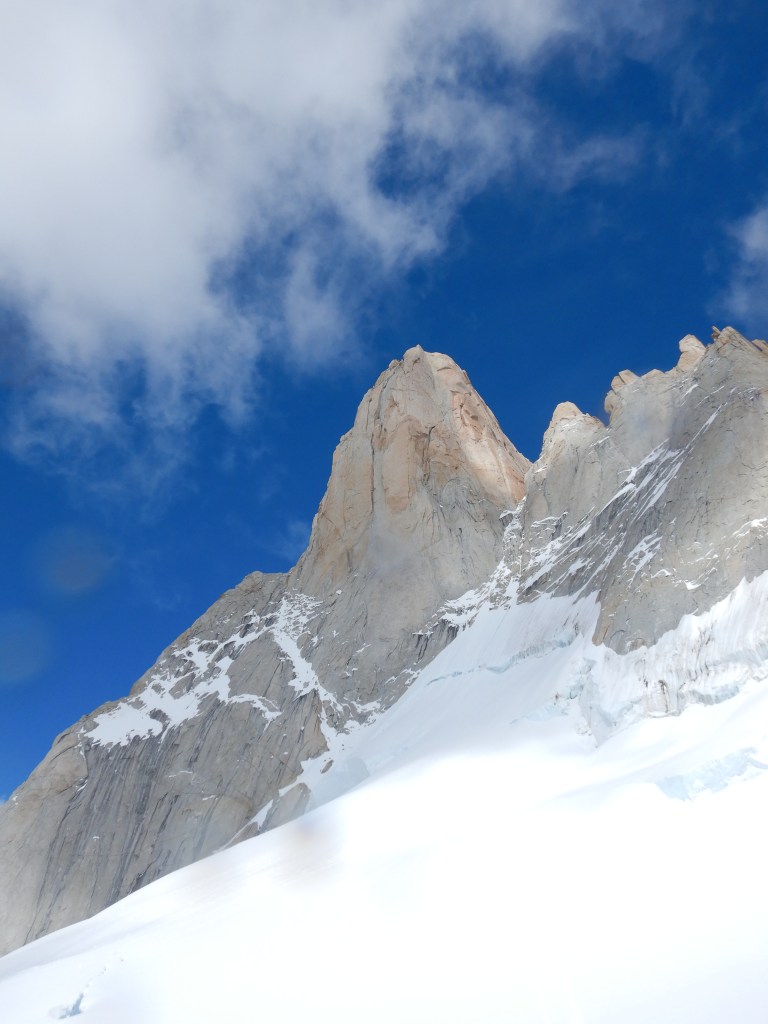 Fitzroy in Wolken. Falls jemand die Verhältnissmässigkeit verstehen will, empfehle ich dieses Bild in hohen Qualität anzuschauen und beim Schneegrat in Bildmitte die Personen zu finden!;)