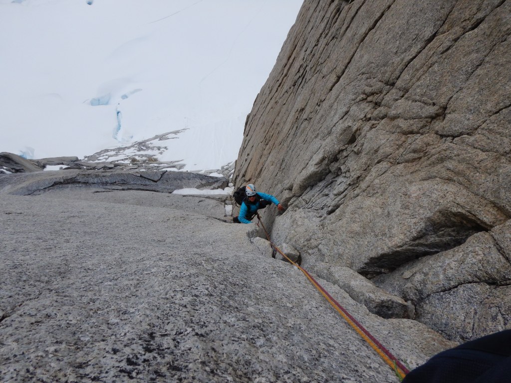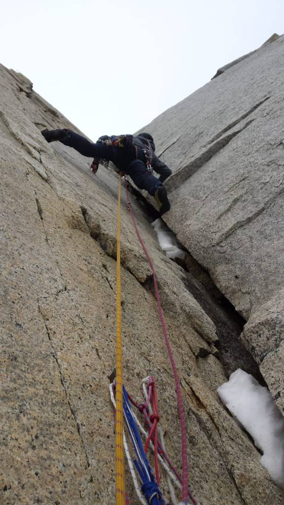 Im Winter 2019 war ich in Patagonien mit einer guten Freundin, Sylvia. Das Wetter war in den Bergen oft Niederschlagsreich und es gab nur kurze Gutwetterfenster. Fast schon am Ende unseres Trips tut sich aber doch noch ein 2-Tage Wetterfenster auf. Kurzentschlossen habe ich mich mit einem Freund, den ich hier kennengelernt hatte, zusammen getan um auf die Poincenot zu klettern, da er auch noch nicht oben war, Phil.