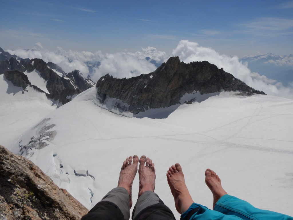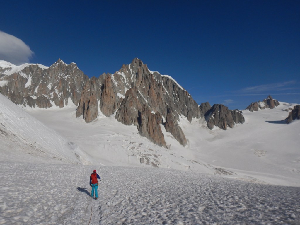 Der Zustieg von der Helbronner-Bahn ist nicht sehr weit und technisch total einfach über einen Gletscher. Gehzeit vlt. 1.5h.