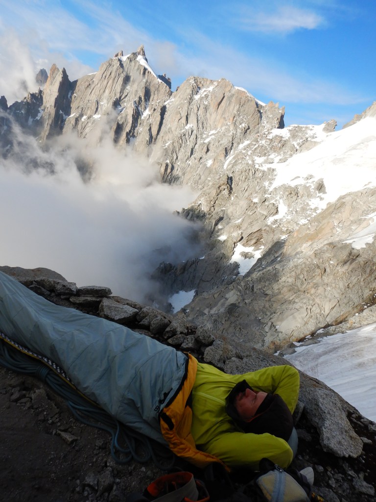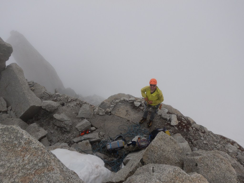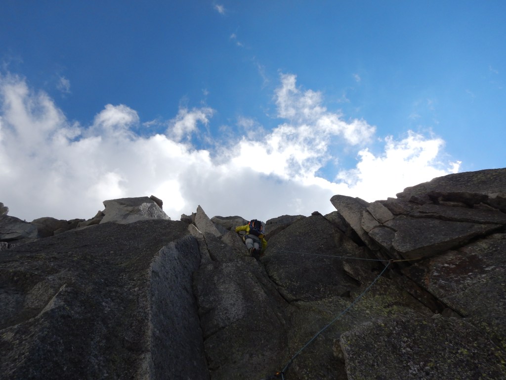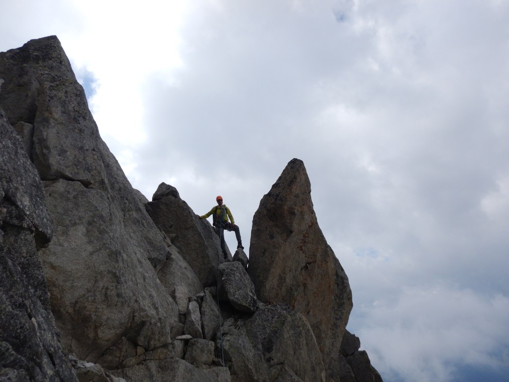 Ich sitze am Gipfel der Grépon und Philip macht die letzten Züge