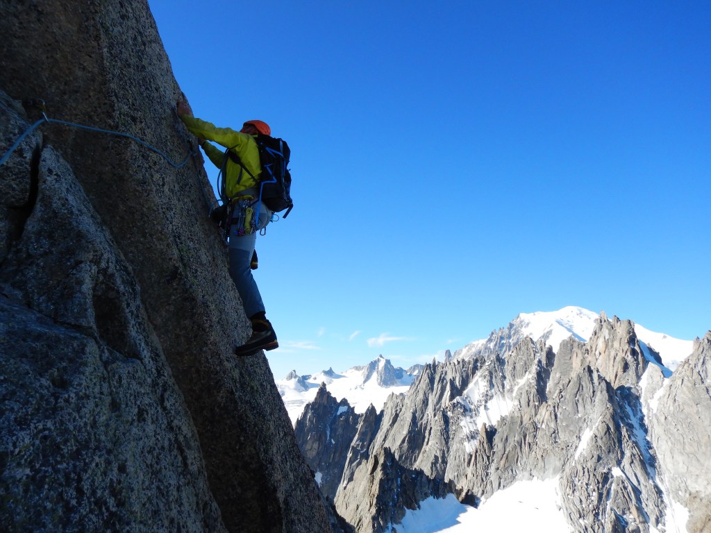 Wunderbare und lange Überschreitung zweier Gipfel, welche man immer von der Bar in Chamonix sieht. Die Kletterei ist durchwegs interessant in guter Felsqualität und die Wegfindung ist anspruchsvoll. Ein gut eingespieltes Team und speditives Klettern ist Voraussetzung um hier durch zu kommen. Meist wird man in dieser Überschreitung die einzige Seilschaft sein, was den Abenteuerfaktor nochmals hebt. Eine der besten Gratüberschreitungen die ich gemacht habe.
