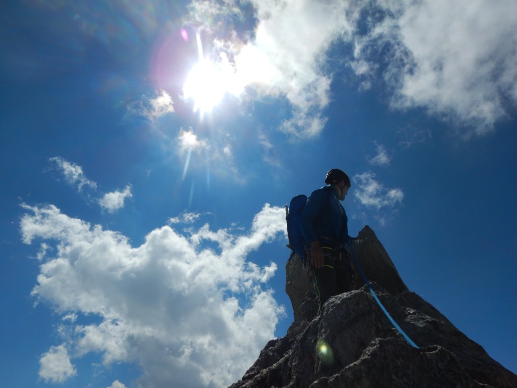 Bezgl. besseren Optionen sei hier noch angefügt, dass von der Scharte, von welcher wir abgeseilt hatten die Kletterei direkt hoch wohl nur 5/5+ gewesen wäre und ich das nächste Mal wenn ich hier zu weit klettere auf jeden Fall direkt hoch würde.