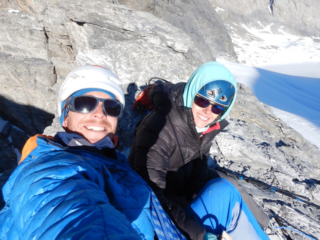 Die Ausstiegslänge (M3) geht dann durch Bruch an den Ausstieg der Route, wo wir dann erstmals an diesem Tag die wärmende Sonne zu spüren bekamen. Leider blies hier ein eiskalter Wind, die erste Pause des Tages gönnten wir uns aber nichts desto trotz!